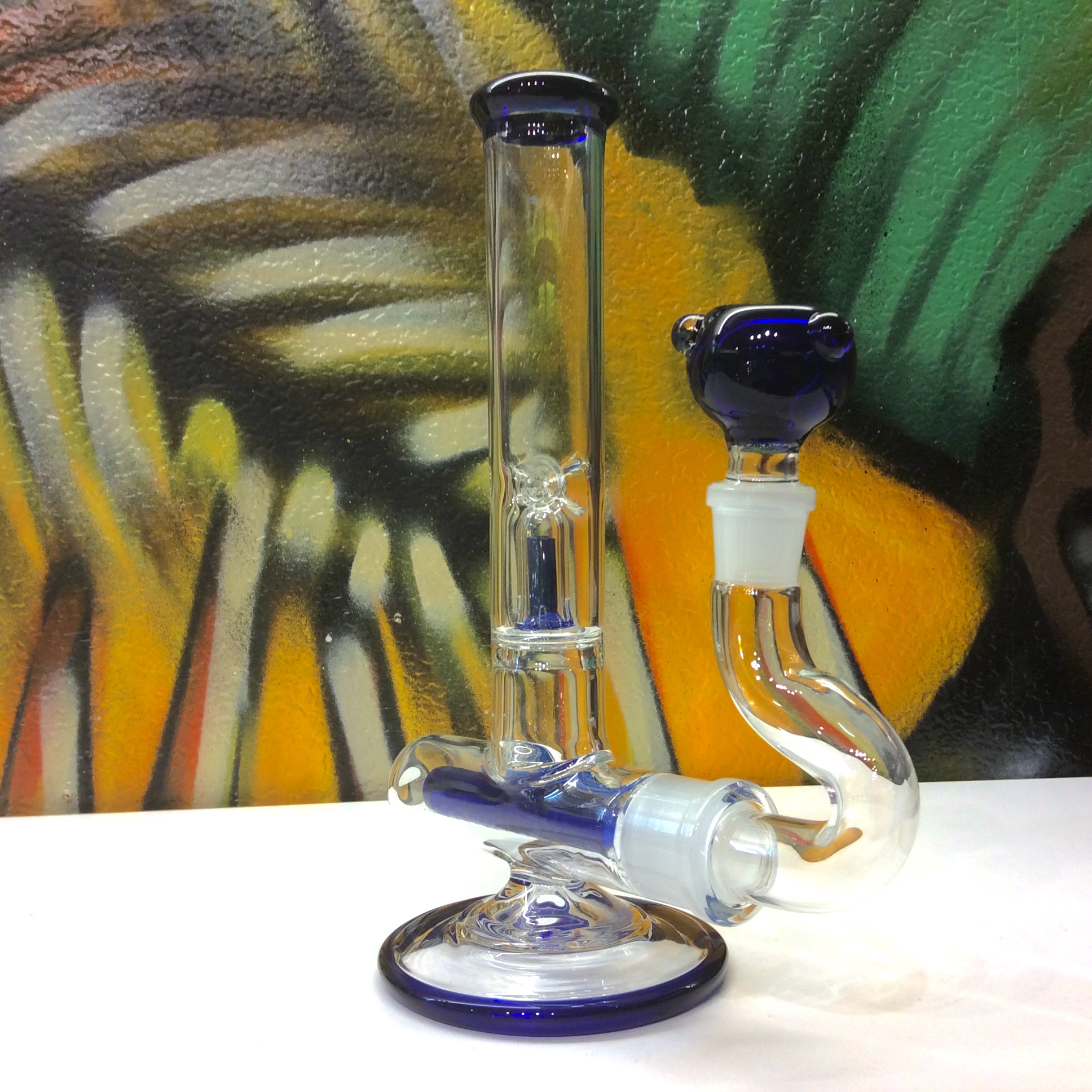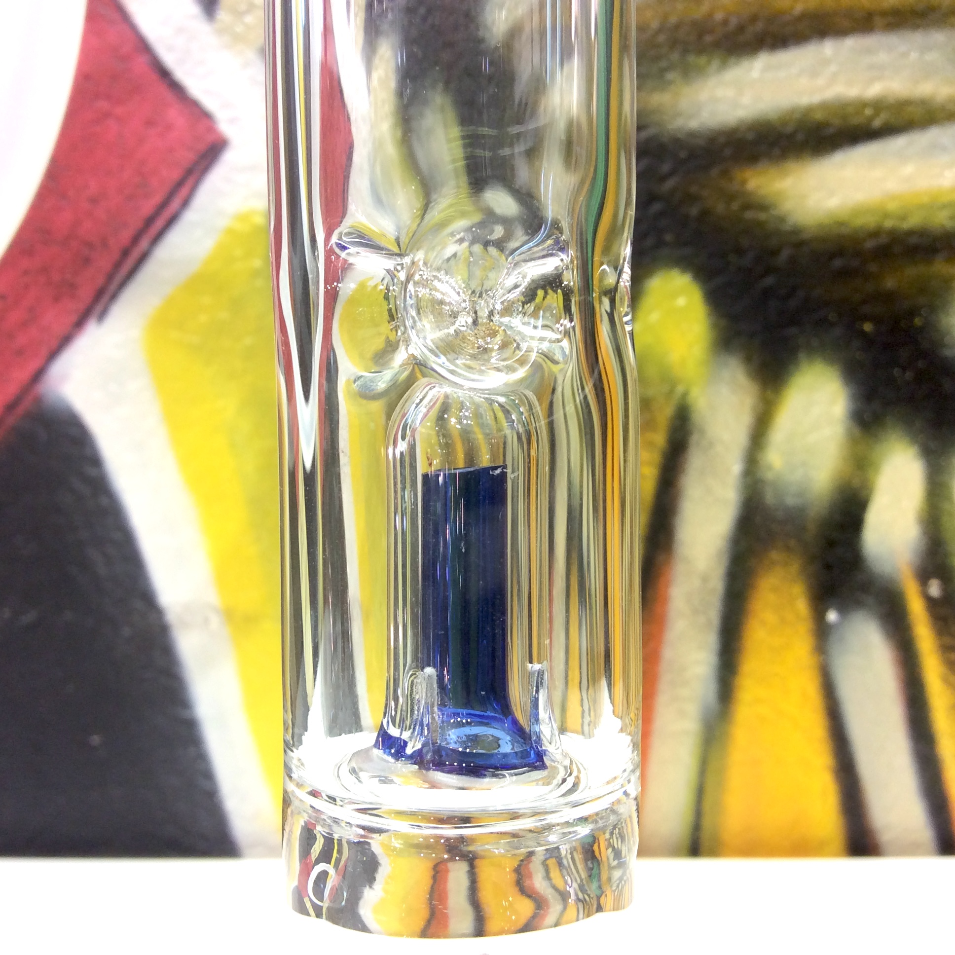 Ce percolateur fait bouillonner l’eau et refroidi la fumée, qui passent ensuite dans un deuxième percolateur vertical tube-dôme dans le tube d’aspiration.