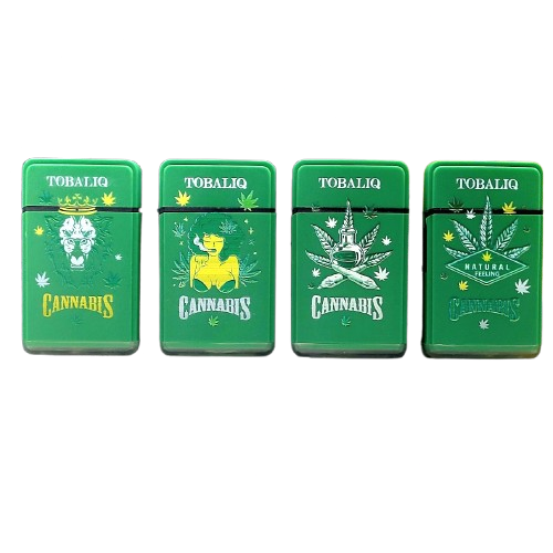 Belle série de briquets tempête de la marque Tobaliq. La série « King Cannabis » se décline en 4 modèles.