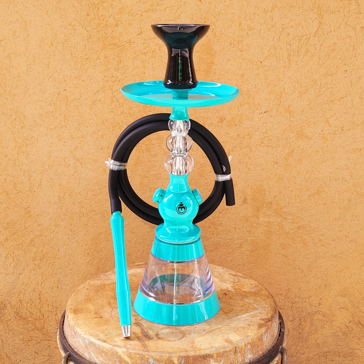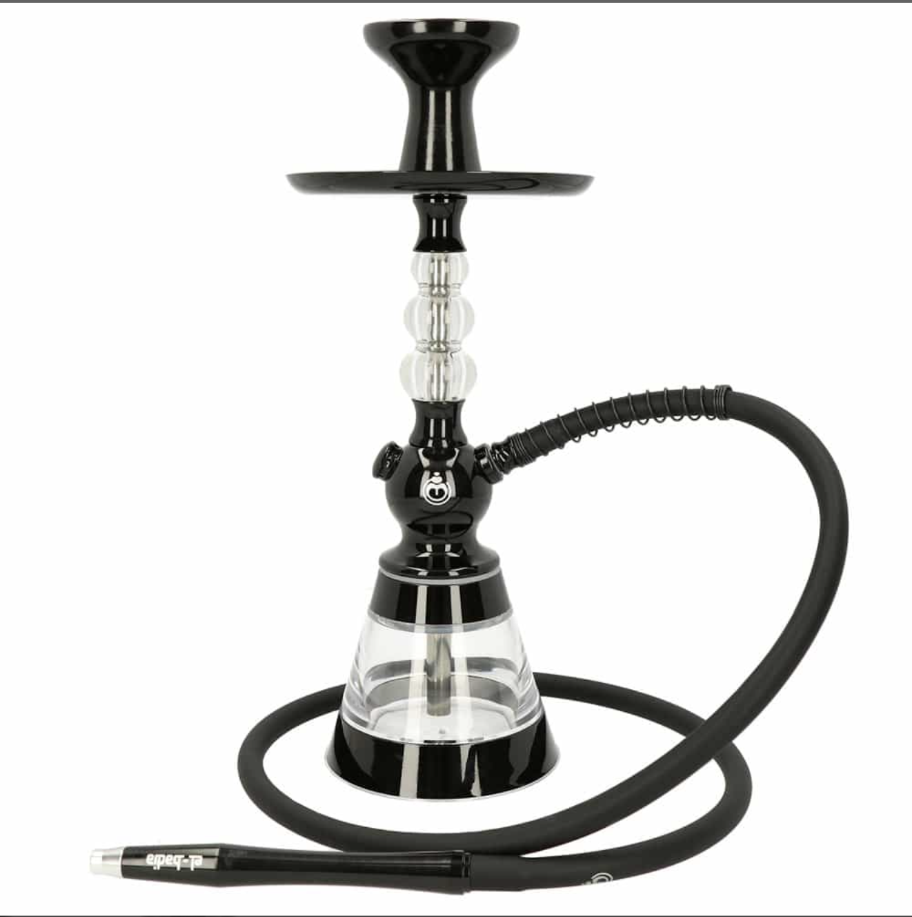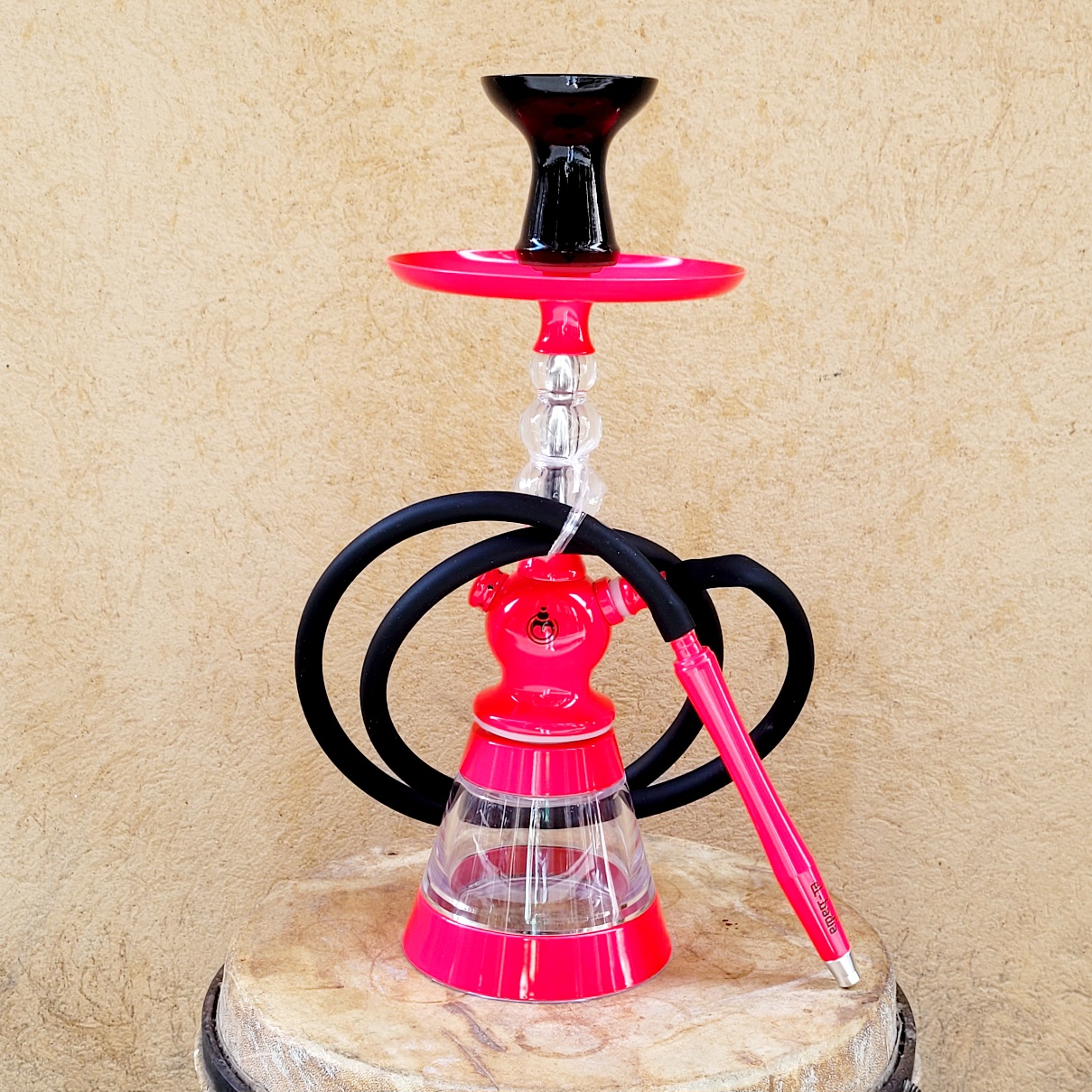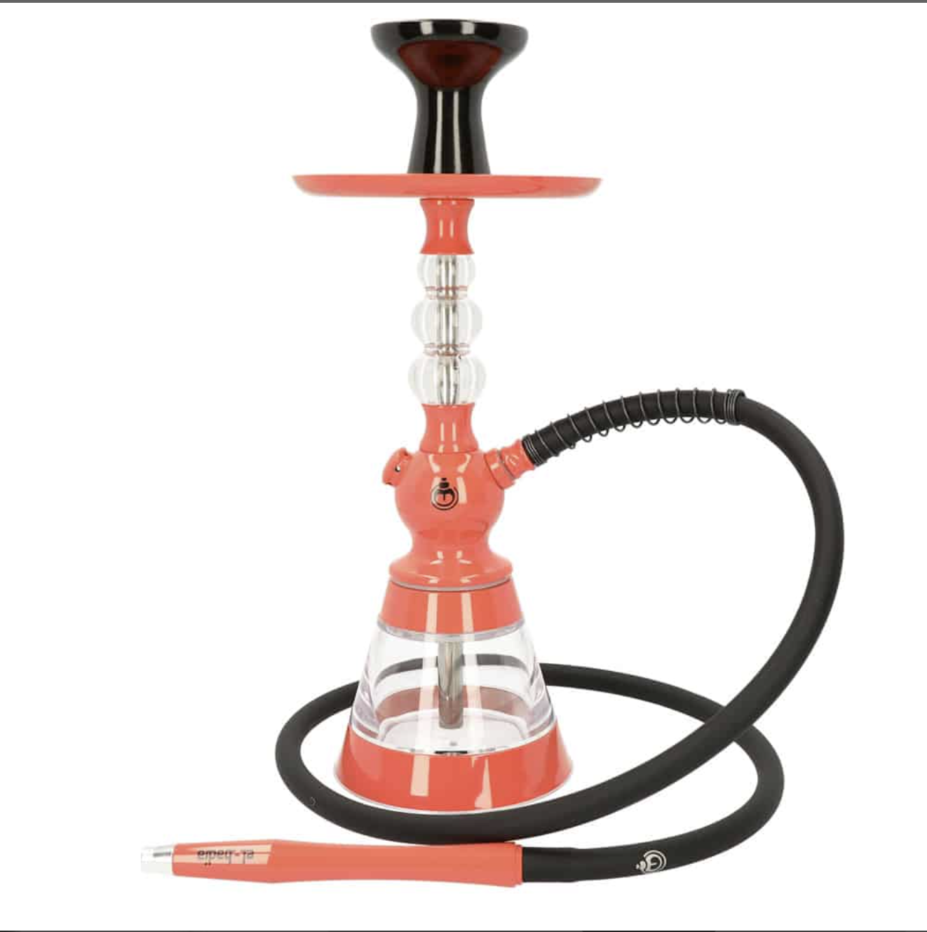 En plus de leur taille idéale, – 40 cm avec le foyer- ces chichas se distinguent par leur légèreté. Foyer en céramique, corps et cendrier en métal, et vase conique en acrylique. Tuyau silicone noir et manche en métal de la couleur de la chicha.