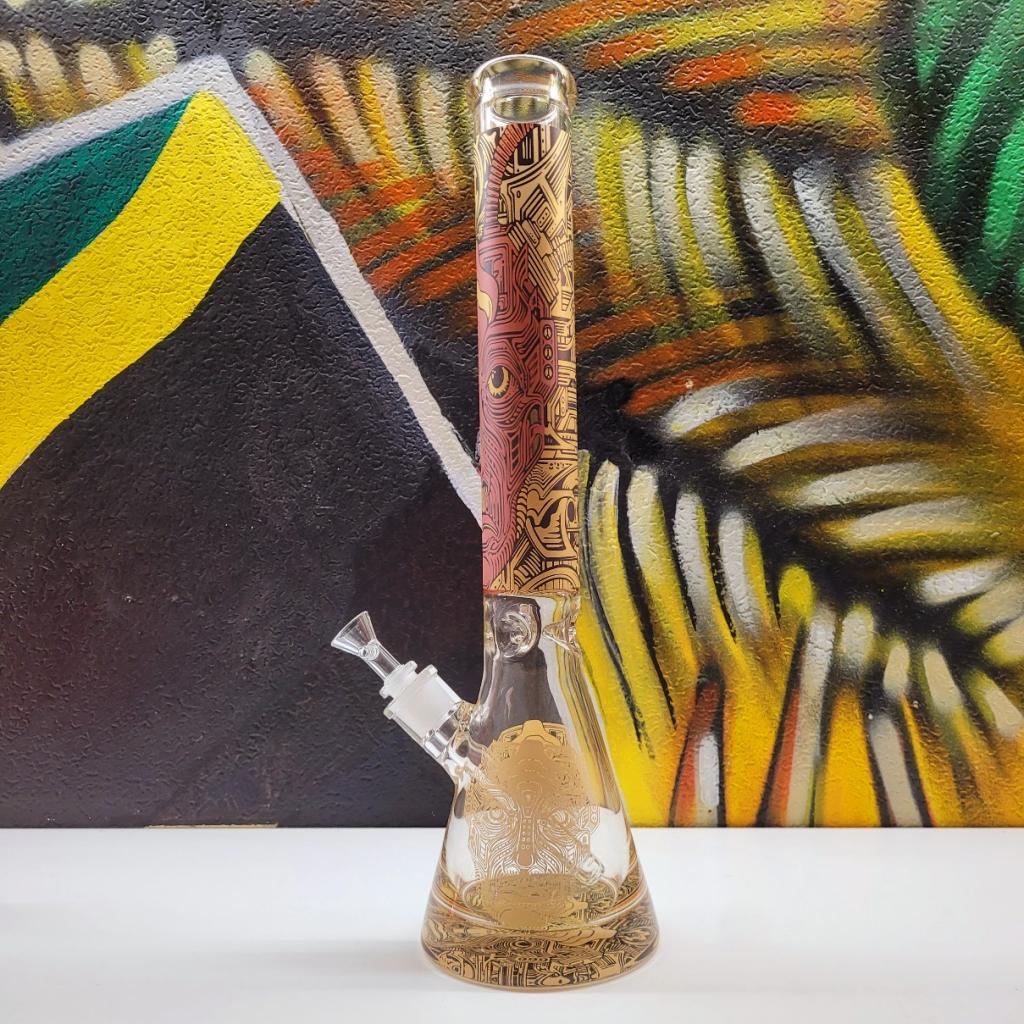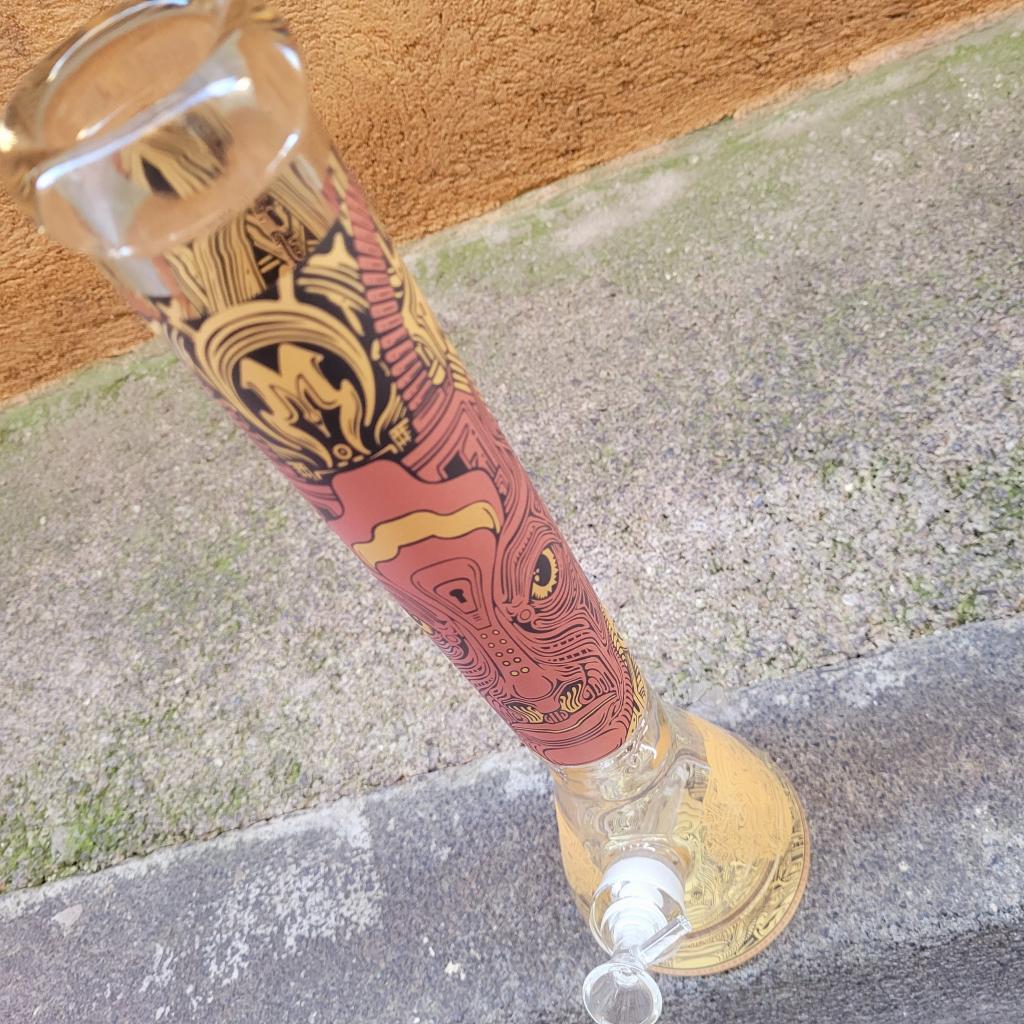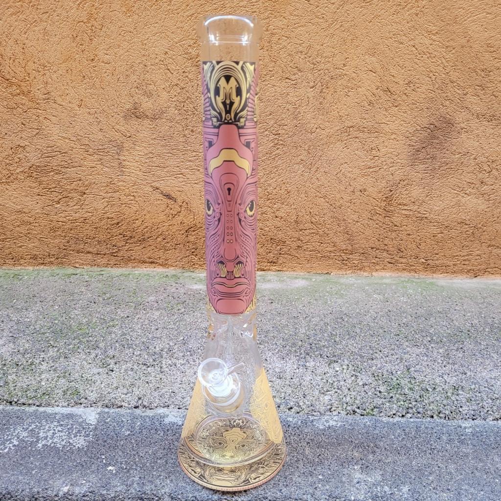 Un magnifique bang en verre très épais – 7 mm ! – , taille 42 cm, à réservoir pyramidale.