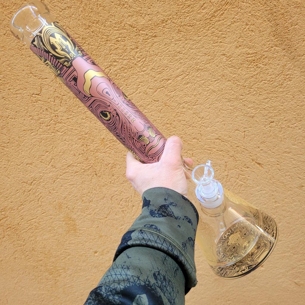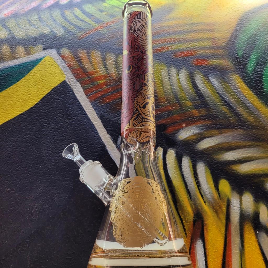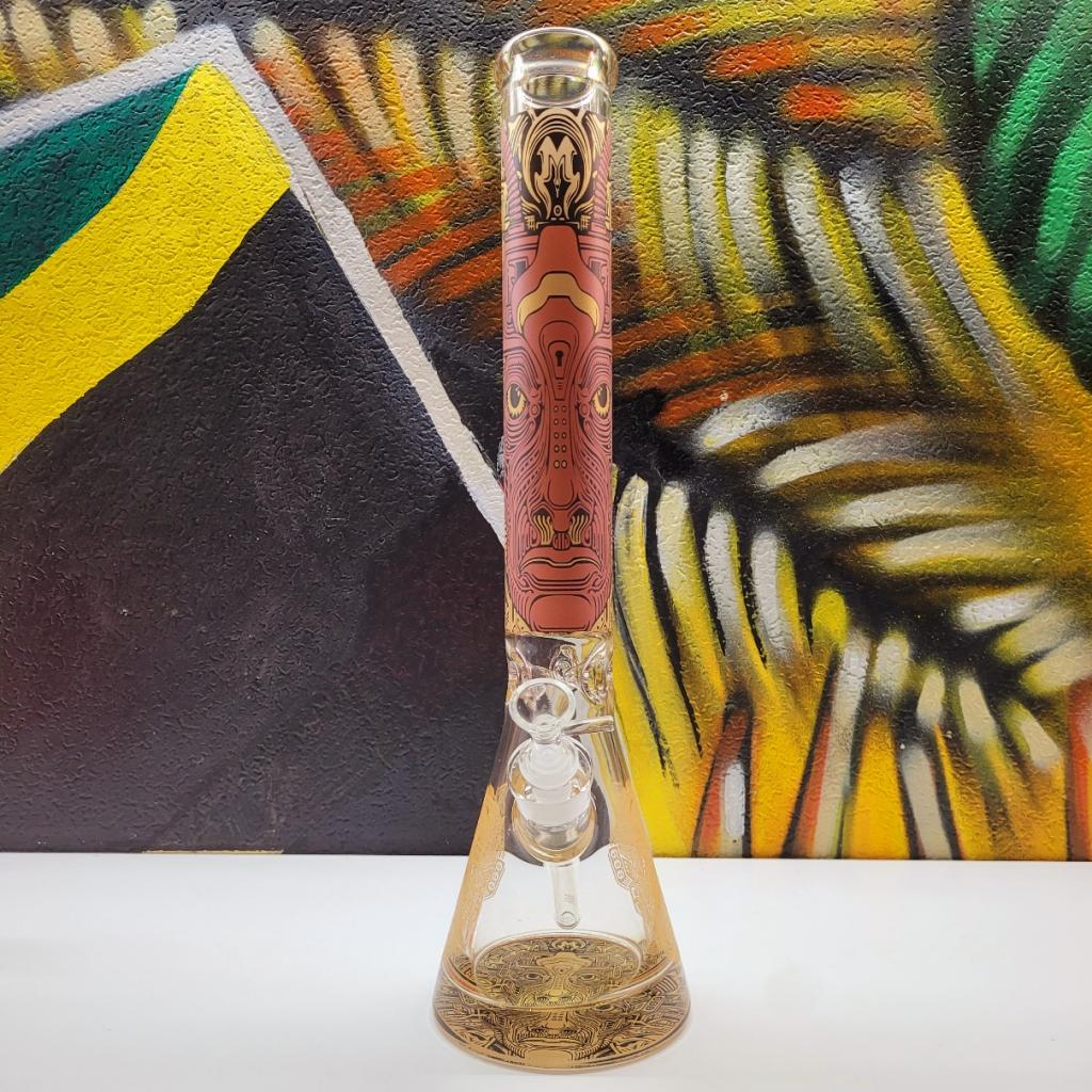 Un magnifique bang en verre très épais – 7 mm ! – , taille 42 cm, à réservoir pyramidale.
