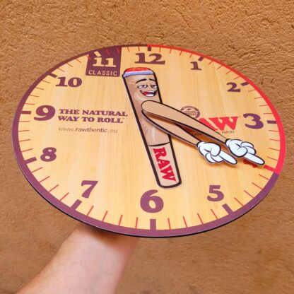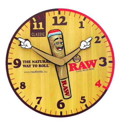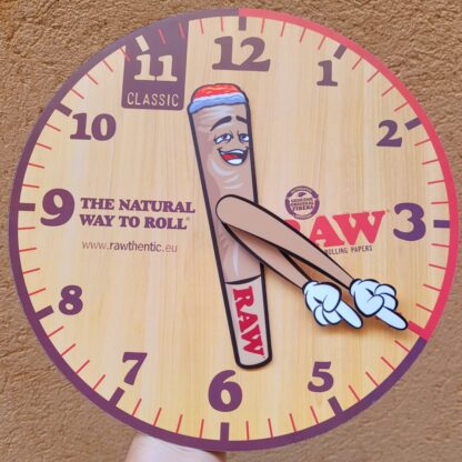 Voici une superbe horloge RAW© officielle, murale, à accrochée facilement à la cuisine, au salon, dans la chambre. 30 cm de diamètre, sur un clou, une vis, ou un crochet grace à son emplacement à l’arrière. Elle fonctionnes avec une pile AA (non fournie), pèse 500 grammes. Elle est en bio plastique.
