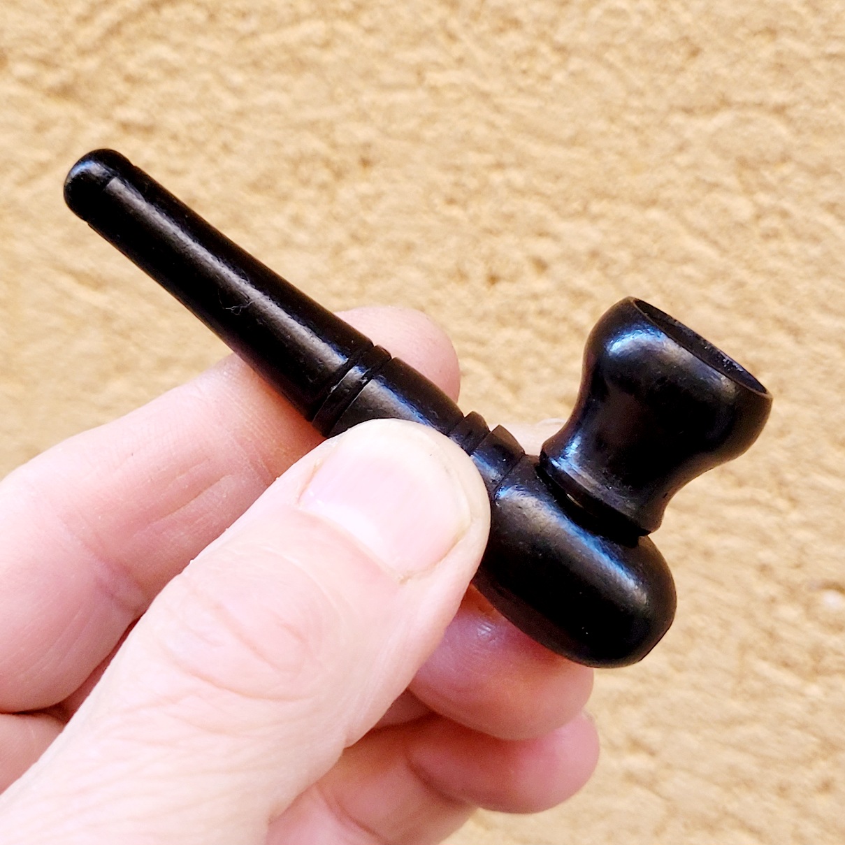 Toute petite pipe en bois, avec prise d’air, et foyer dévissable (pour nettoyage facile). Vous pouvez utiliser les cures-pipe pour la nettoyer.