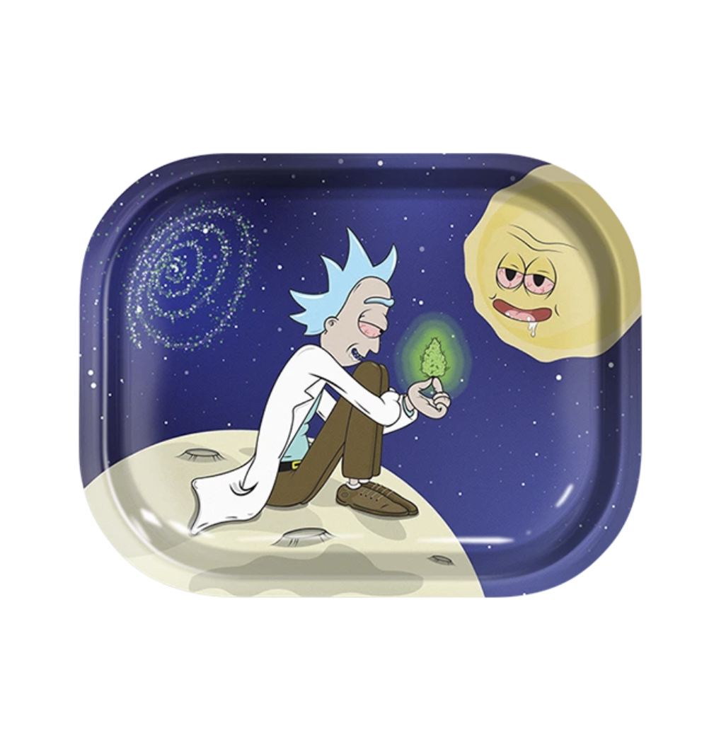Découvrez notre joli plateau à rouler  « Little Rick » en métal , taille médium  (14 x 18 cm) qui va faire briller vos sessions ! Le plateau à rouler Little Rick  représente Rick, le célèbre scientifique déjanté de « Rick et Morty », en pleine contemplation sur la lune. Avec un regard intense il scrute une belle tête lumineuse qu’il tient à la main, qui semble éclairer sa reflexion, comme s’il réfléchissait à sa prochaine grande expérimentation intergalactique.