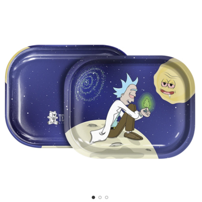 Découvrez notre joli plateau à rouler  « Little Rick » en métal , taille médium  (14 x 18 cm) qui va faire briller vos sessions ! Le plateau à rouler Little Rick  représente Rick, le célèbre scientifique déjanté de « Rick et Morty », en pleine contemplation sur la lune. Avec un regard intense il scrute une belle tête lumineuse qu’il tient à la main, qui semble éclairer sa reflexion, comme s’il réfléchissait à sa prochaine grande expérimentation intergalactique.