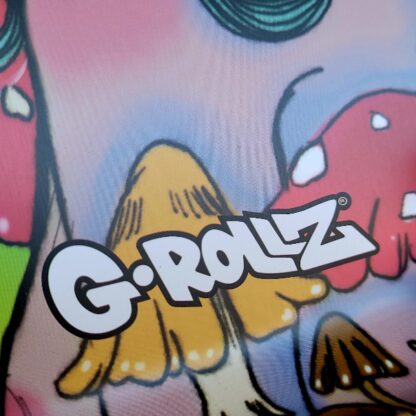 Joli design « Smokey Shroom », (« champi-fume »), toujours reconnaissable de chez G-Rollz pour ce plateau à rouler en métal léger, décoré devant et derrière, pour ceux qui ne veulent plus mettre du mix sur la moquette ou sur les sièges arrière…