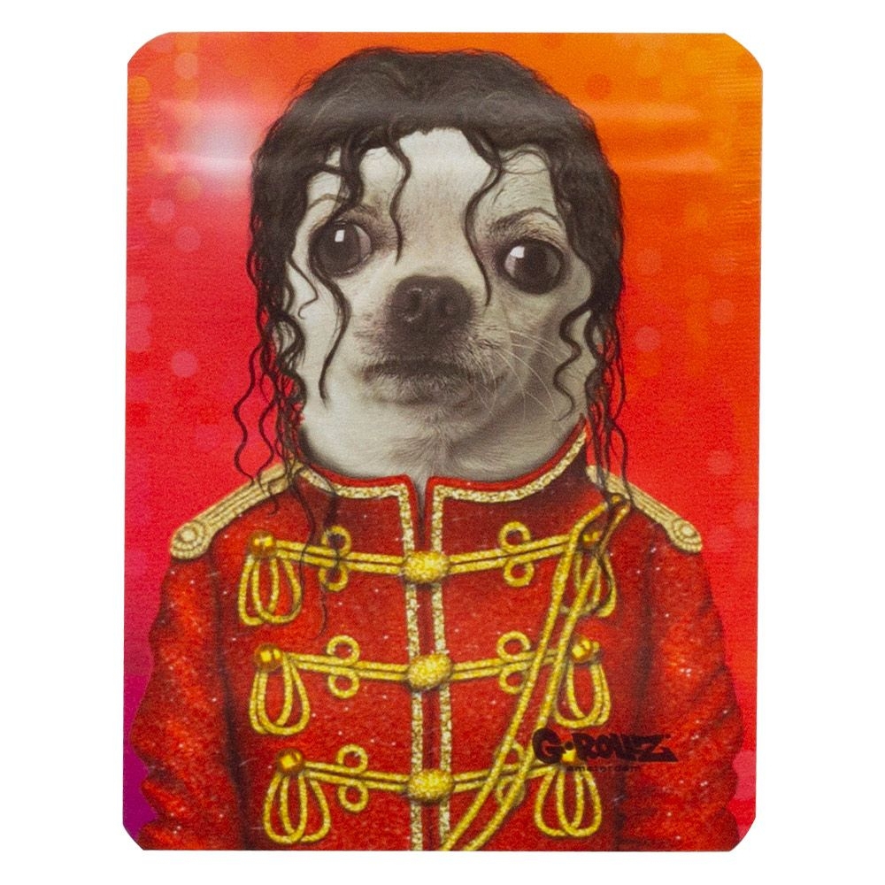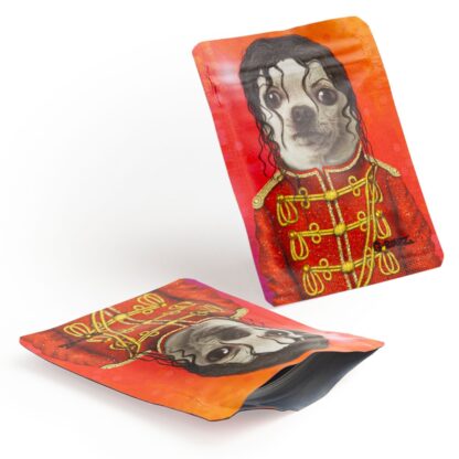 Pochons épais, fermeture hermétique, dimension 65 x 85 mm, déco « King of the pop », le « Michael-dog ».